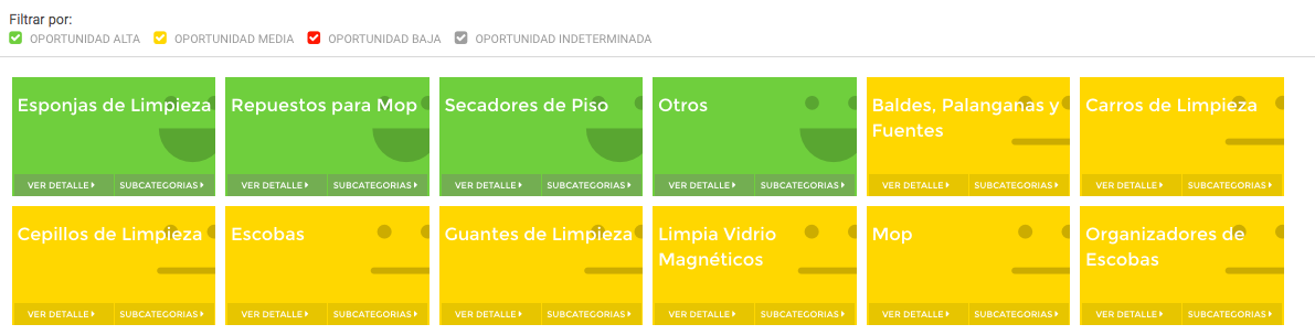 No México e Argentina, no entanto, o nível de oportunidade é médio, embora algumas subcategorias apresentem essa oportunidade. Por exemplo, no país, as oportunidades podem não ser o esfregão, e sim os itens associados que aparecem: como peças de reposição ou esponjas de limpeza.
